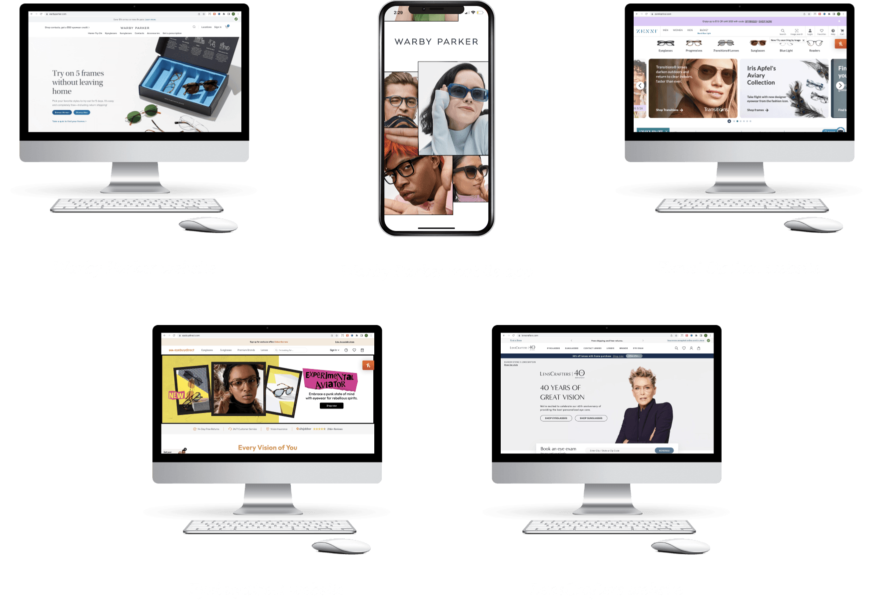 We looked at 4 brands’ websites and 1 brand’s mobile app to evaluate their AR virtual - try on experiences. The brands were: Warby Parker (website and mobile application), Zenni Optical, LensCrafters, and Eyebuydirect.