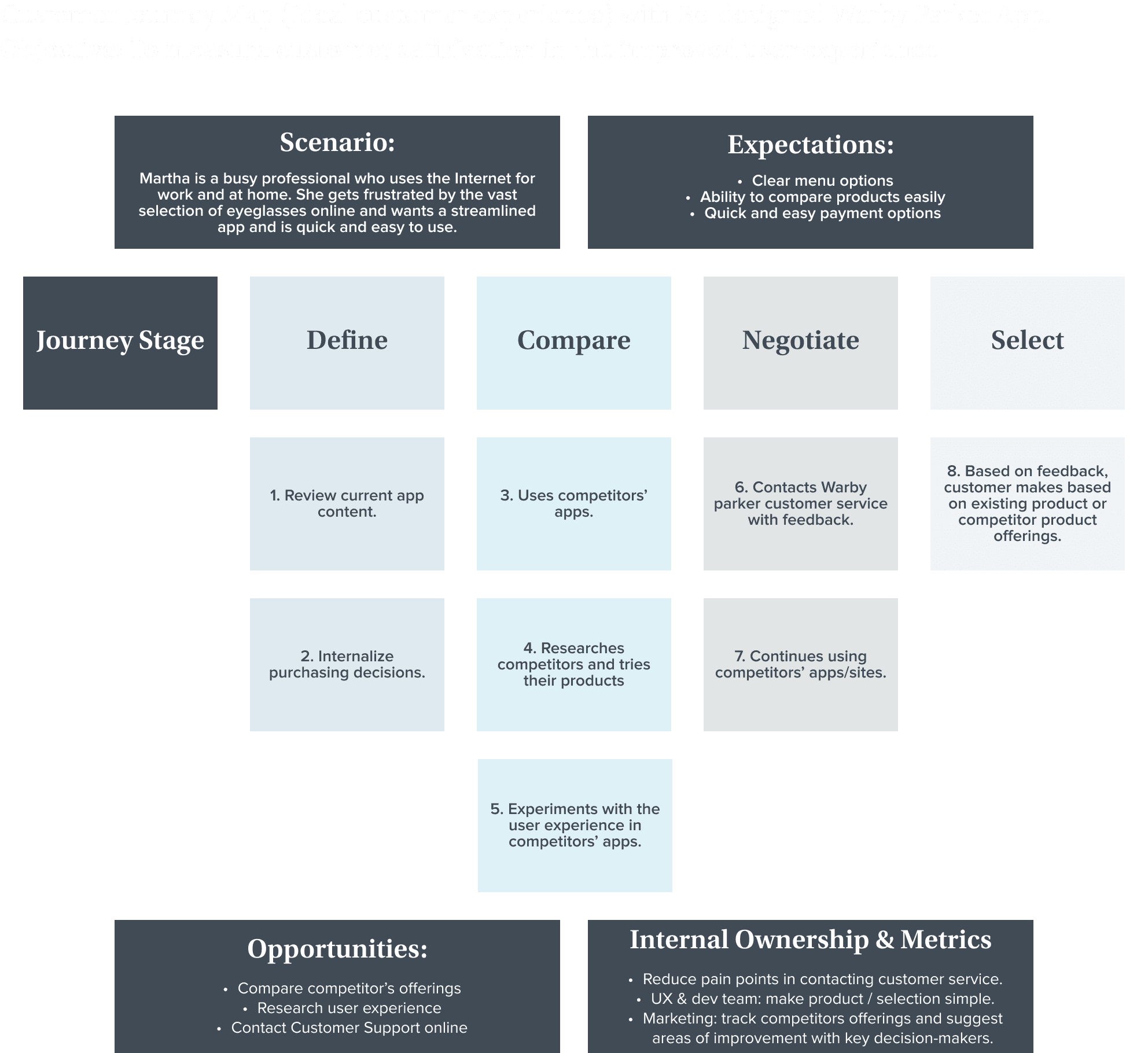 Apart from the personas created above, we also created customer journey maps in order to better visualize a how a customer interacts with existing e-commerce platforms and identify potential intervention points in the process.